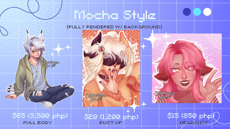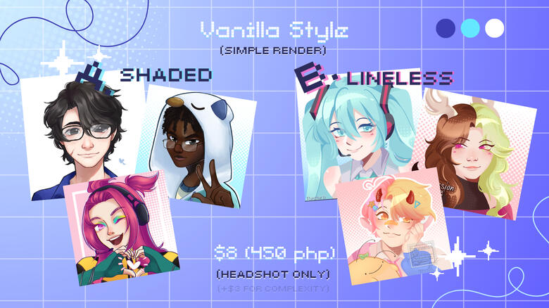 Headshot ( $15 [ 850 pesos ] )+ Additional character in one art ( will be ยฝ of the price )